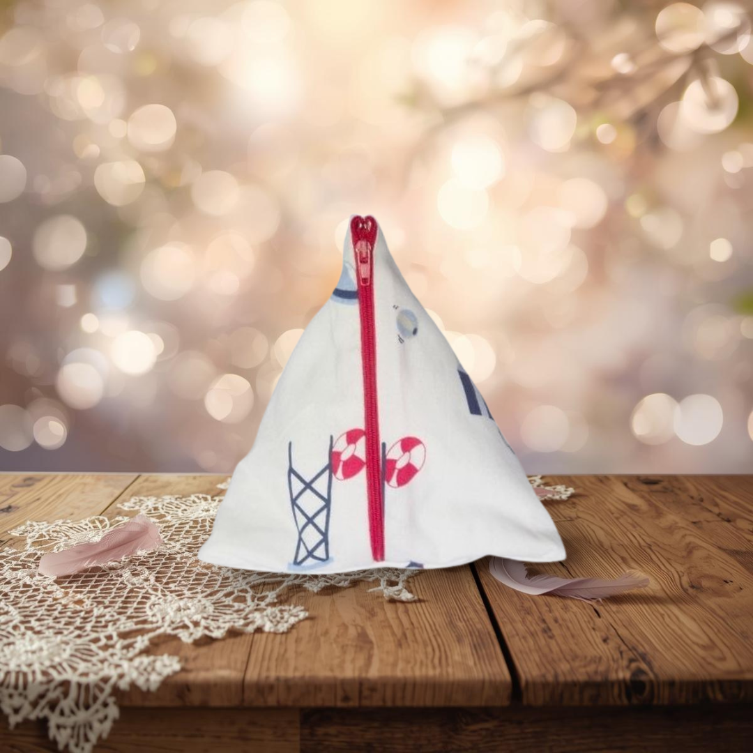 Conçu à partir de tissus recyclés et upcyclés soigneusement sélectionnés, chaque berlingot est une pièce unique. Aucun modèle ne se ressemble, ce qui en fait un objet à forte valeur émotionnelle, décorative et symbolique. Offrir ou s’offrir un berlingot artisanal univers marin, c’est accueillir chez soi un fragment de mer et de savoir-faire.