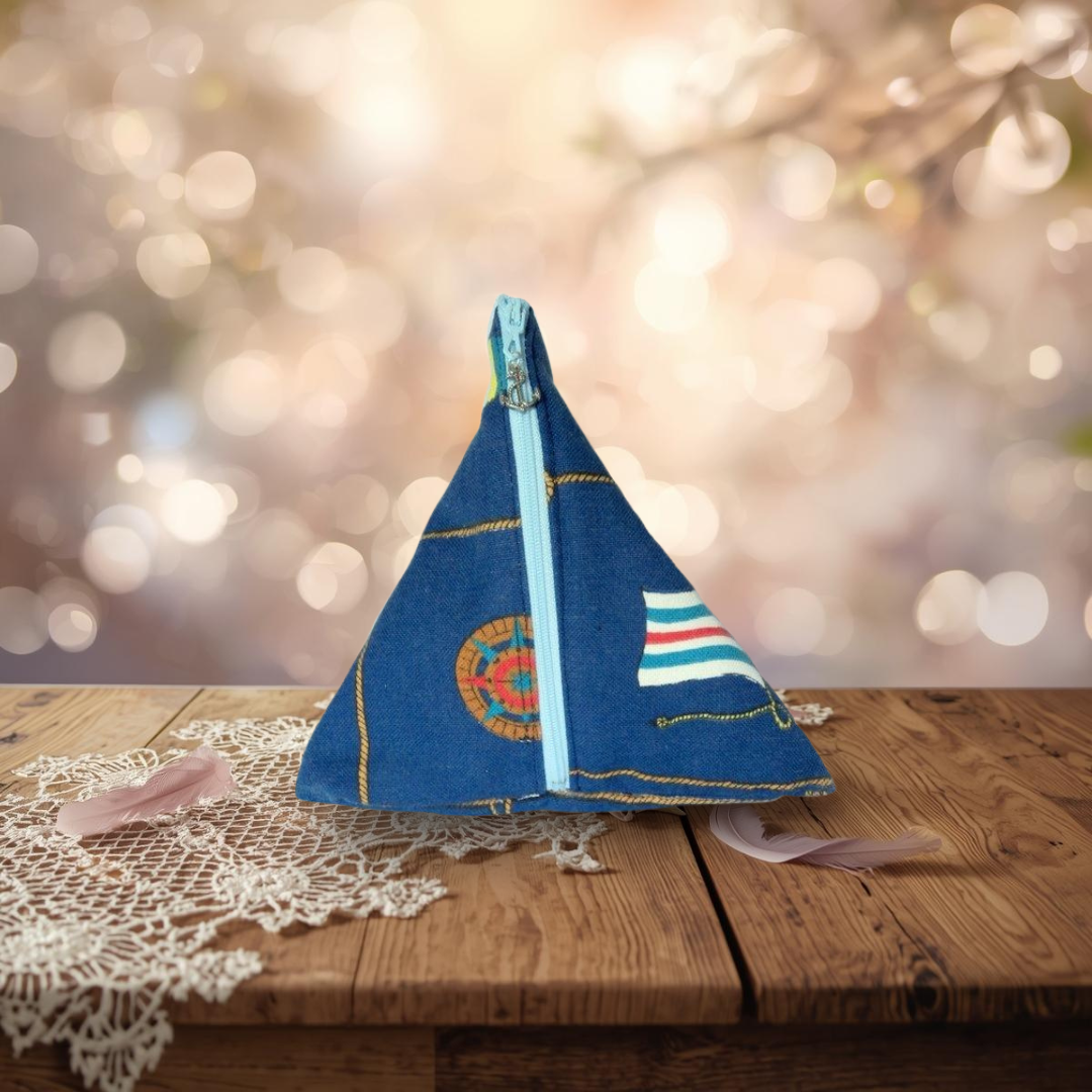 🧺 Berlingot Univers Marin · Nautique Bleu – Textile & Upcyclé | Pièce Unique Artisanale
