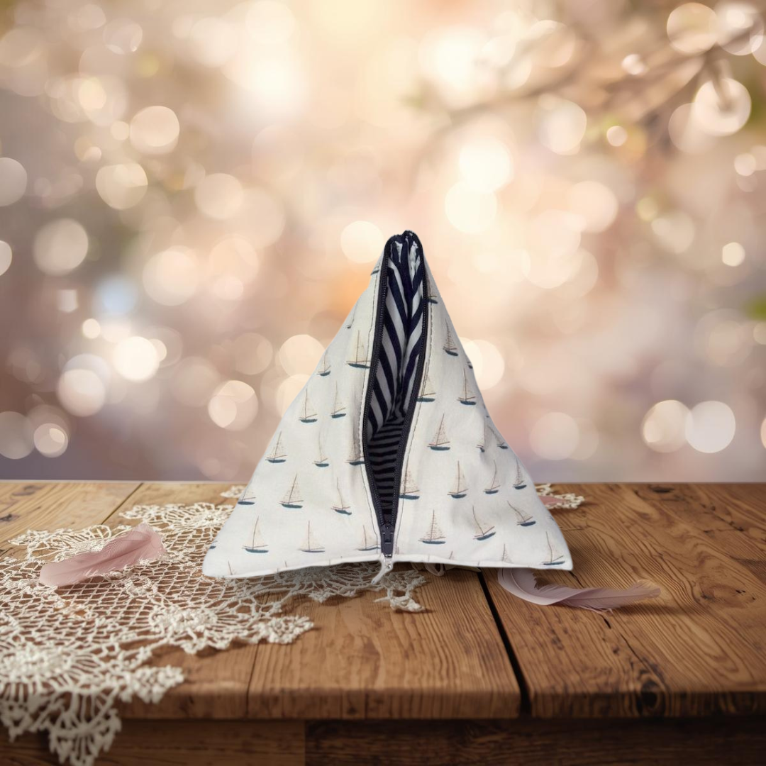 Choisir un berlingot artisanal univers marin, c’est poser un acte de consommation responsable. Les textiles utilisés proviennent exclusivement de matériaux revalorisés — chutes de tissu, pièces inutilisées, stocks dormants — évitant ainsi le gaspillage textile à chaque étape de la fabrication.