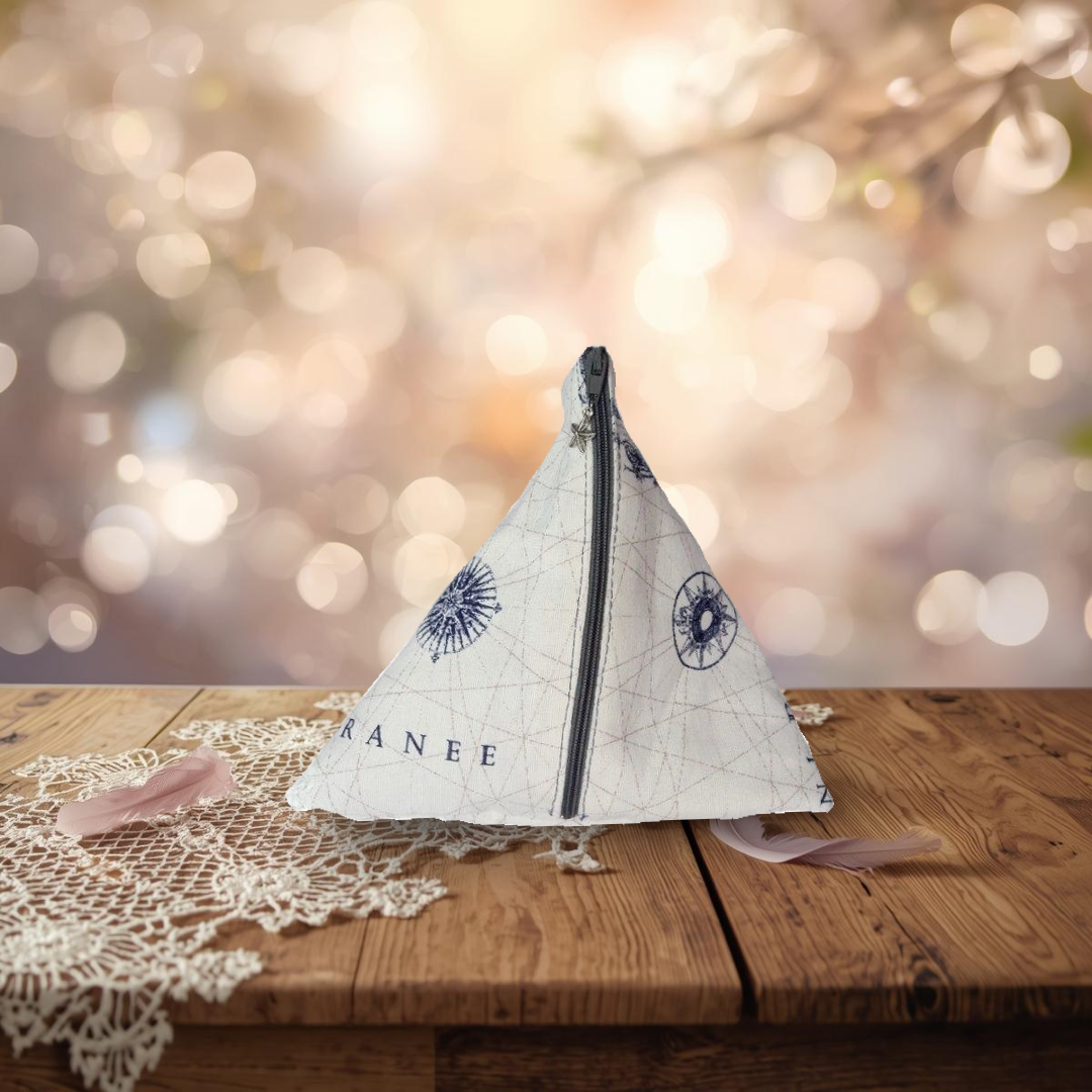 Le Berlingot – Univers Marin · Entre Terre & Mer est un accessoire textile artisanal fait main, pensé pour allier fonctionnalité, esthétique et engagement écologique. Confectionné dans mon atelier à partir de tissus recyclés et upcyclés, chaque berlingot est une pièce singulière, façonnée avec soin et intention.