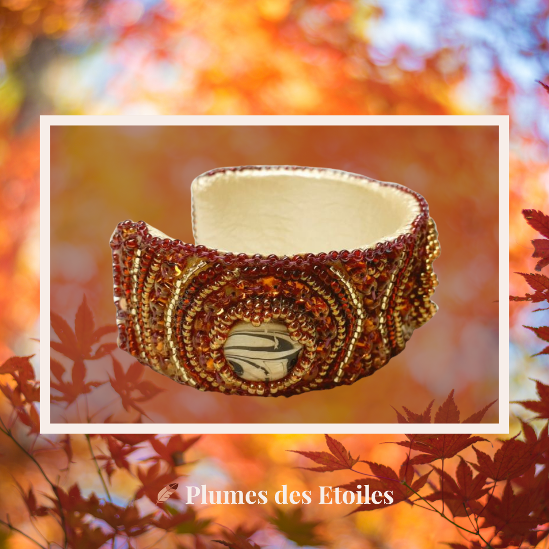 Le Bracelet Tissé – Automne s’inspire de la tradition des bijoux tissés à la main, de la magie des saisons et de la beauté de l’automne. Chaque création est une célébration de la transformation, de la chaleur et de l’authenticité — pour celles qui cherchent un bijou raffiné, authentique et porteur d’âme. Comme les feuilles d’or tissées en perles, ce bracelet porte en lui une histoire — la tienne.