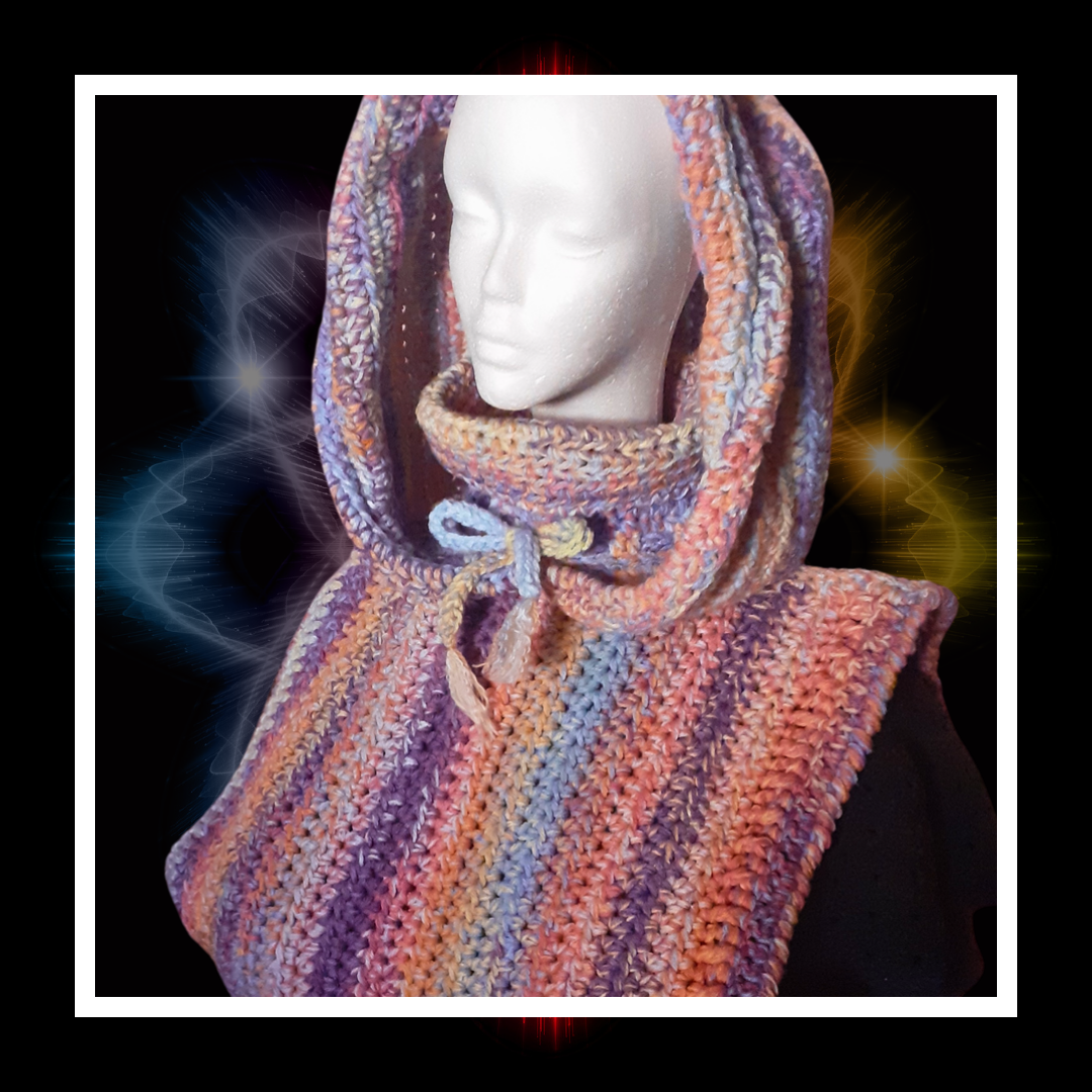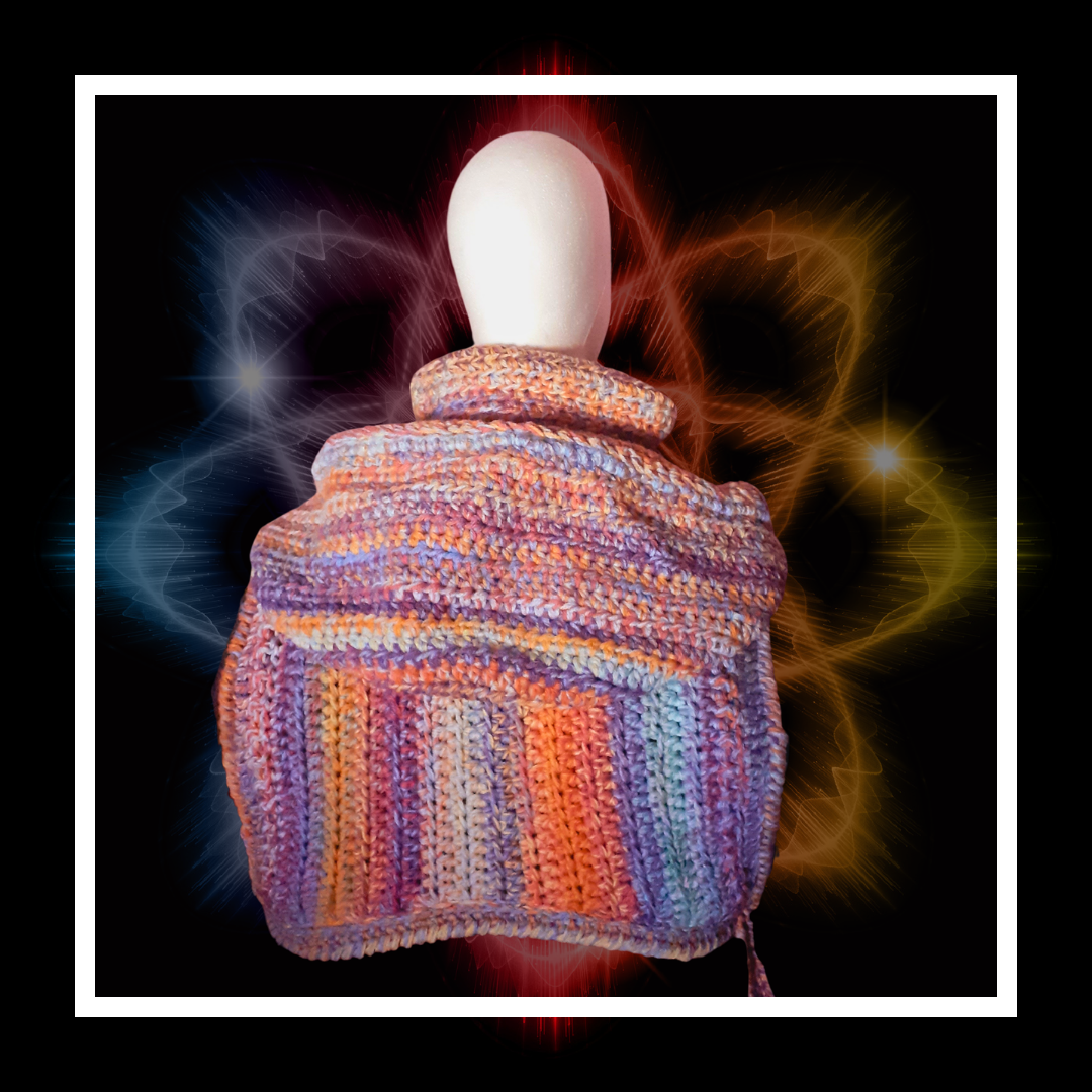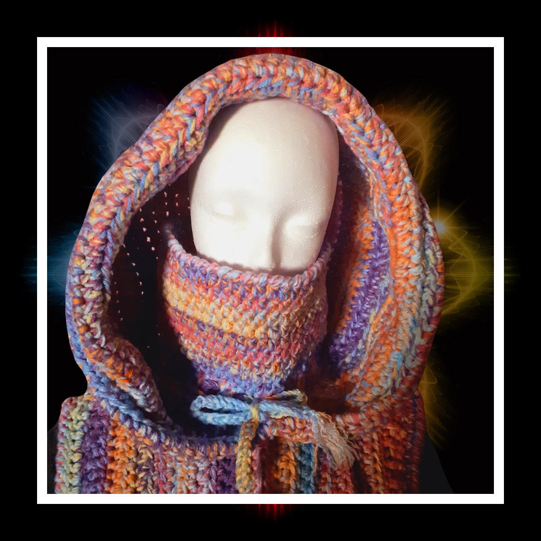 R : C’est un patron reconnu créé par Creatrix in the Matrixx — une capuche enveloppante et protectrice, revisitée ici dans une version artisanale unique.