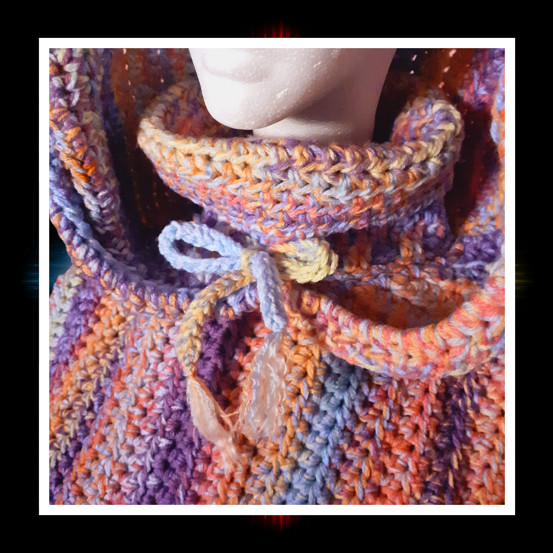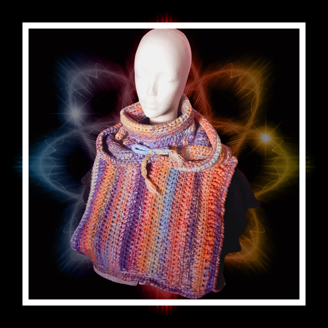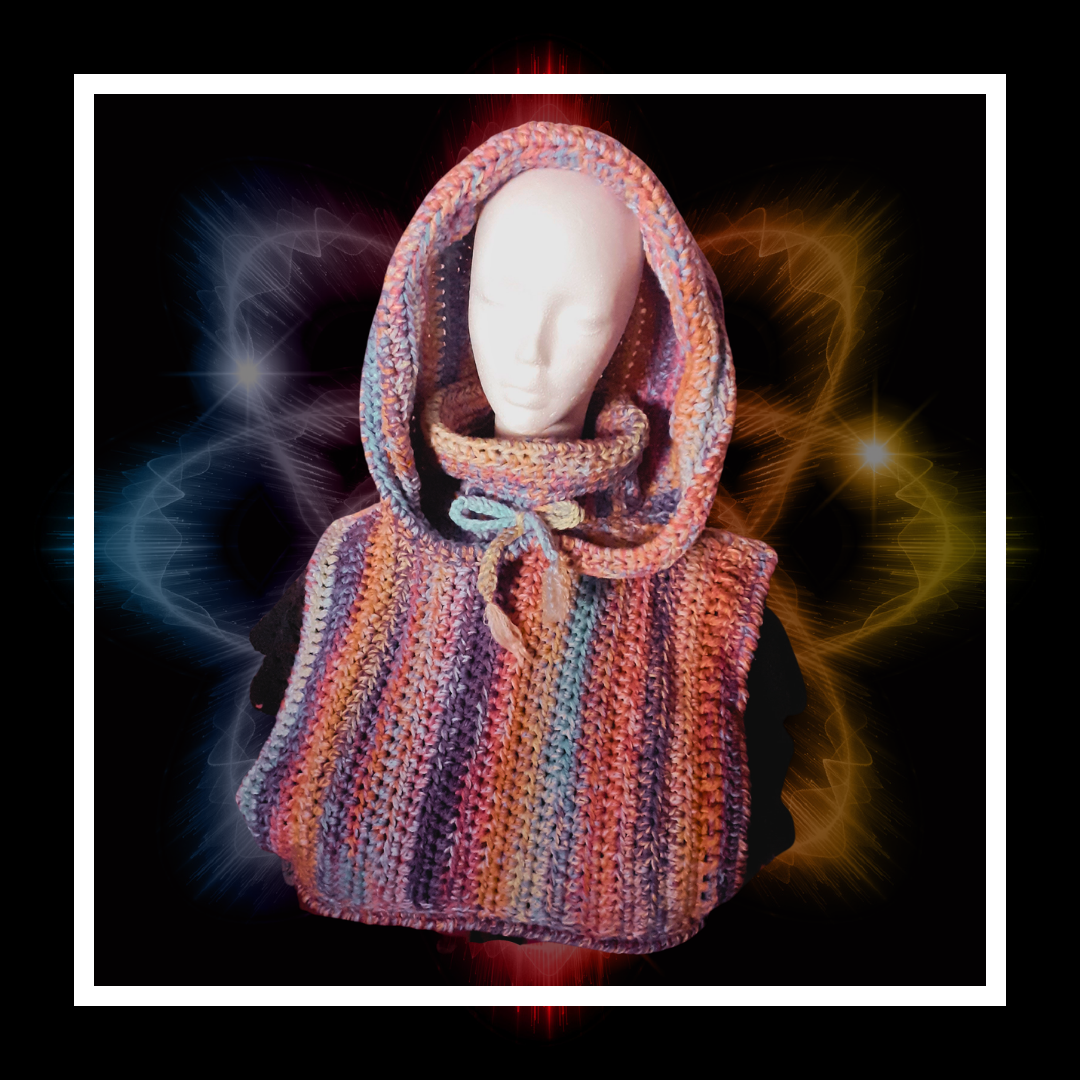 R : C’est un patron reconnu créé par Creatrix in the Matrixx — une capuche enveloppante et protectrice, revisitée ici dans une version artisanale unique.