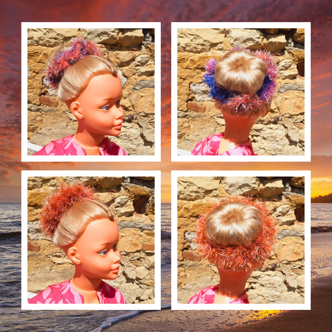 Chouchous crochet artisanaux, poilu et coloré. Pièce unique, doux et élastique. Fait main, respectueux des cheveux.