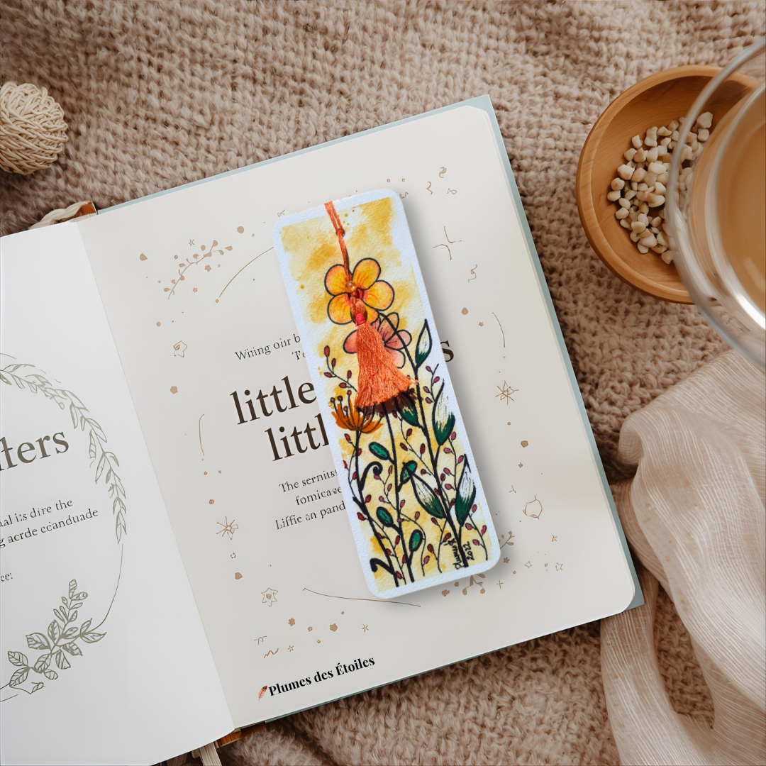 🌸 Marque-Page Fleurs Sauvages – Aquarelle Florale | Pièce Unique Artisanale