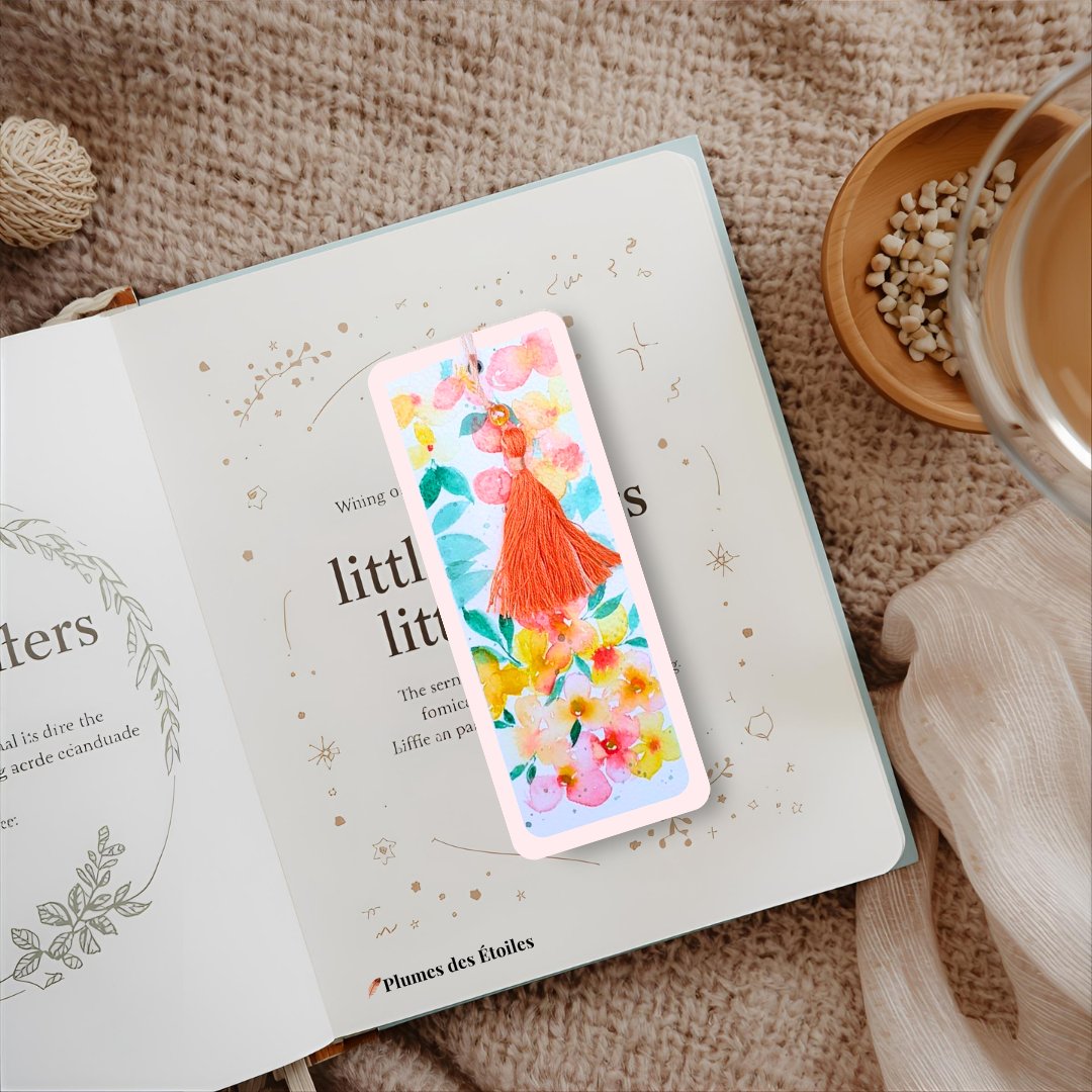 Le Marque-Page Petites Fleurs s’inspire de l’éveil printanier de la nature, de la beauté discrète des petites fleurs des champs et de la magie de la technique aquarelle qui en capte toute la légèreté et la poésie. Chaque création célèbre la douceur de la nature, la joie des couleurs et l’artisanat minutieux — pour celles et ceux qui cherchent un accessoire raffiné, ludique et porteur de beauté printanière au quotidien.