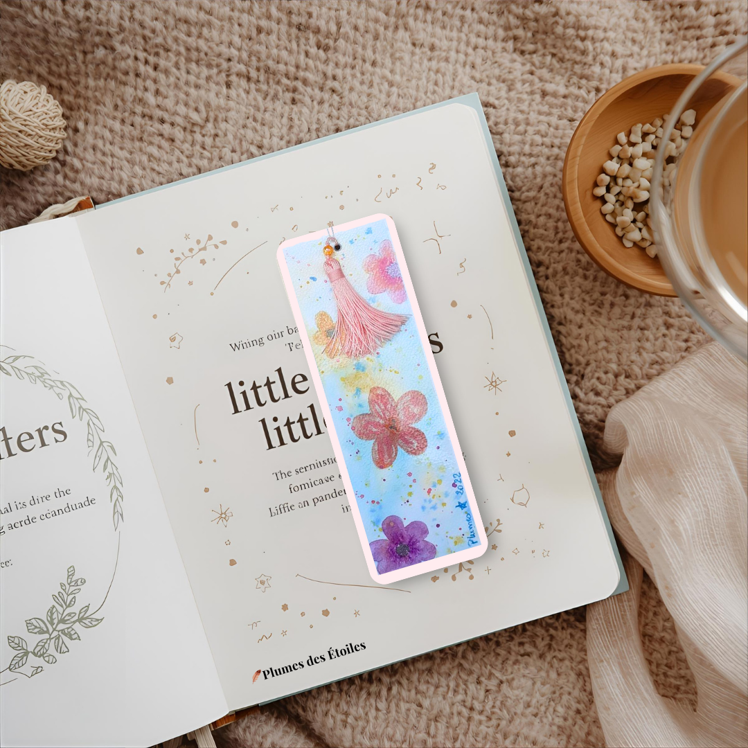Le Marque-Page Symphonie de Fleurs s’inspire de la beauté éphémère de la nature, de la douceur des pétales et de la magie de la technique aquarelle qui capture toute l’harmonie et la sérénité des fleurs. Chaque création célèbre la lecture, le calme et l’artisanat authentique — pour celles et ceux qui cherchent un accessoire raffiné, original et porteur de douceur au quotidien.