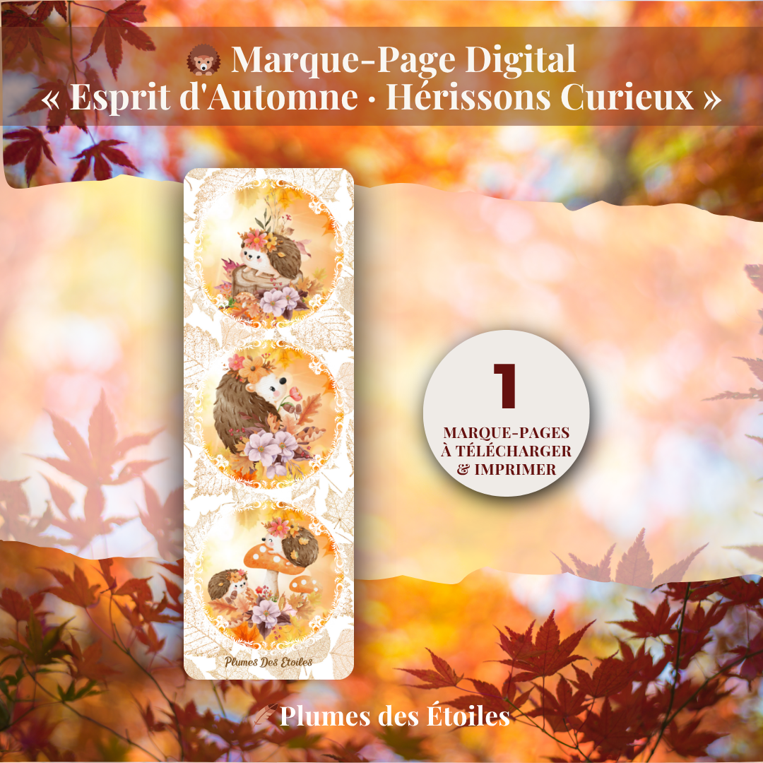 🦔 Marque-Pages Digital – « Esprit d’Automne · Hérissons Curieux »