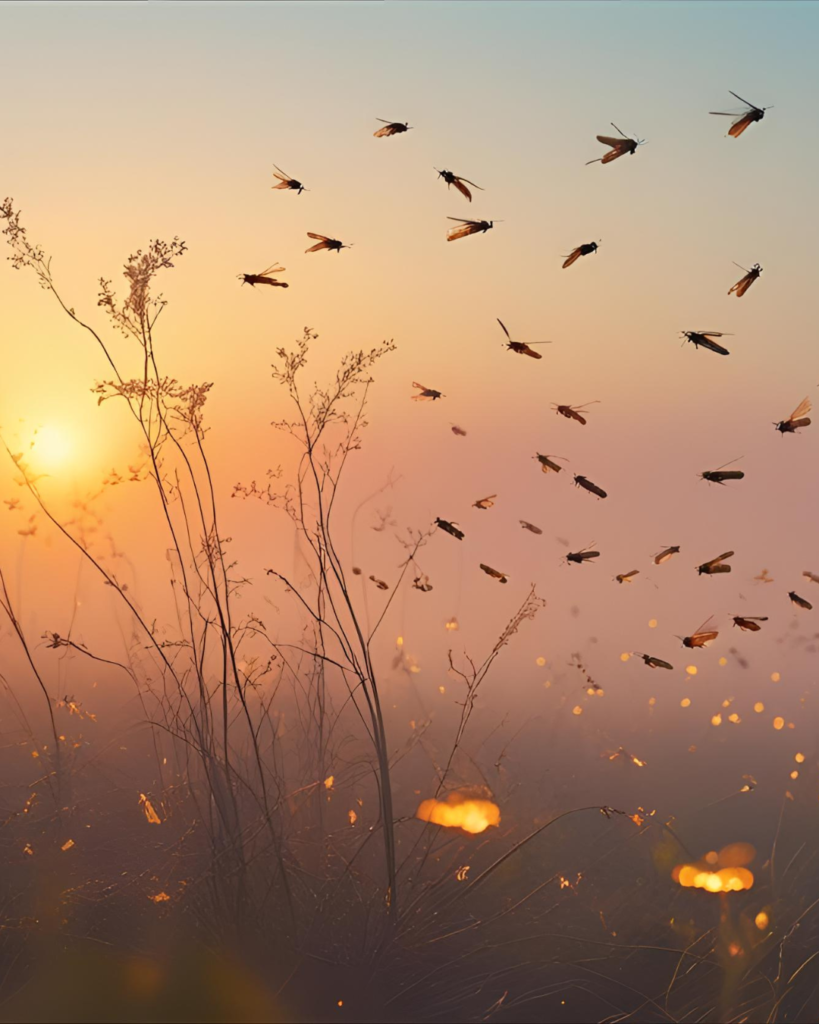 C’étaient des lucioles, flottant lentement dans l’air chaud, comme si elles dansaient au rythme d’une musique invisible. Là commença la danse des lucioles et le souffle du vent, une rencontre qui allait tout changer.